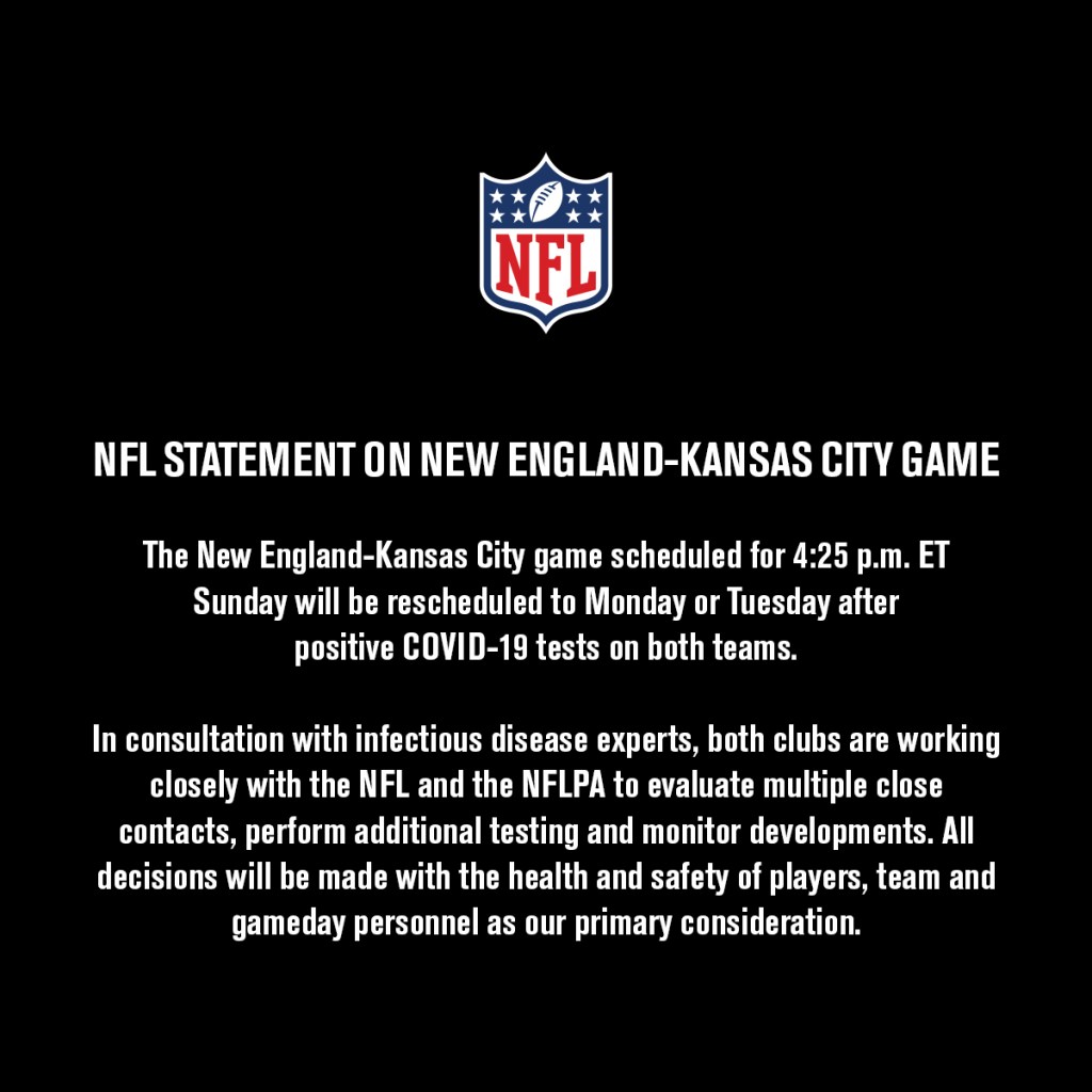 So, positive tests on BOTH teams now. What a shit show. Don’t expect the league to shut down though, the top 15 rated shows on TV in September were ALL NFL games. Goddamn Jags games are getting higher ratings that the Stanley Cup, the NBA Finals, MLB Playoffs, and all the reality shows FOX can throw a Nick Cannon at.